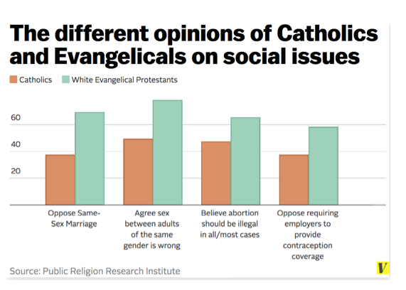 Catholic opinion survey vs Evangelical Protestants